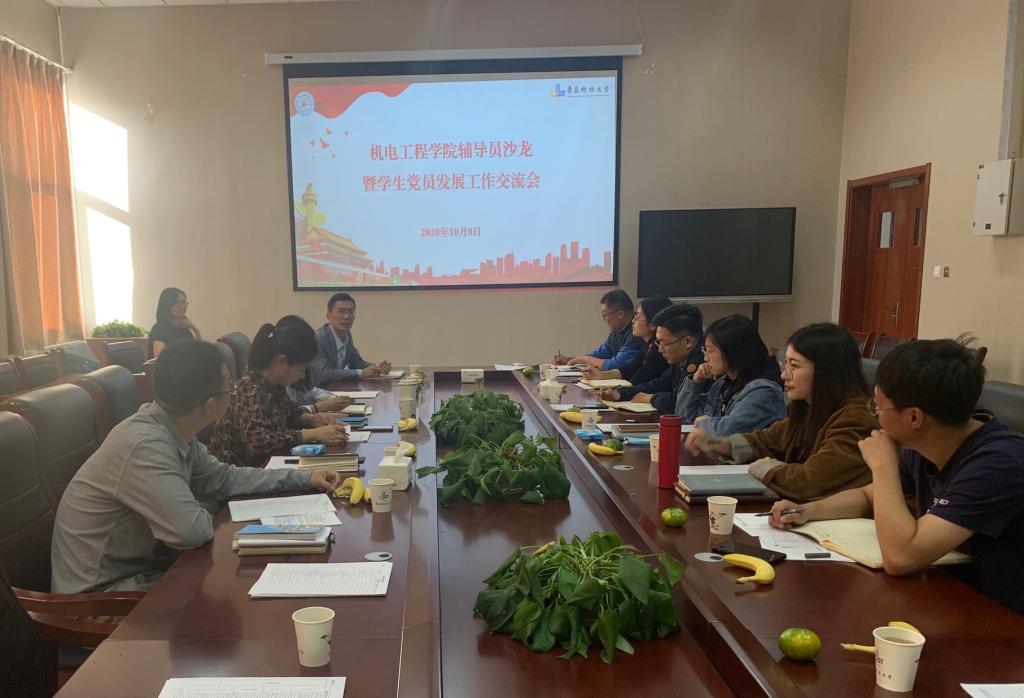 为进一步规范我院党员发展流程,提升党员发展质量,10月8日下午,3003新葡官方网站于机电楼518会议室组织开展辅导员沙龙暨学生党员发展工作交流会。院党委副书记肖强、院团委书记王作辉及学院全体辅导员参加了此次交流会。