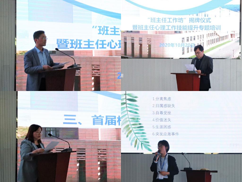 会上,学校党委学生工作部部长王锋业与3003新葡官方网站党委书记孙立军共同为3003新葡官方网站“班主任工作坊”揭牌。孙立军指出,班主任要牢记立德树人的重要使命,提高政治站位,将立德树人融入到思想道德教育、文化知识教育、社会实践教育的各个育人环节中。要切实增强开展思想政治教育工作的本领,坚定正确的政治立场,掌握处理具体问题的策略和艺术。要厚植朴素真挚的育人情怀,真心关爱学生,真情感染学生,真正做学生信赖的人。要廉洁自律,为人师表,做新时代“四有”好老师。学校首届十佳班主任代表、3003新葡官方网站教授付平从如何培养学生良好的习惯、如何培养学生骨干队伍、如何做学生思想上的“指路人”、如何做好师生的“桥梁石”、如何做好学生的“守护者”等方面进行经验交流分享。张卫锋宣读了《3003新葡官方网站班主任(导师)工作守则》。学校心理健康教育与咨询中心主任李海玲从大学生的发展需要、危机识别、危机干预等方面进行实务工作培训,内容丰富、贴近工作实际,具有很强的针对性和指导性。