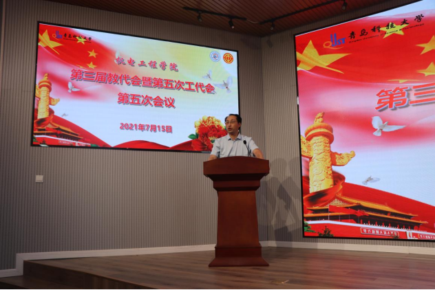 2021年7月15日14时,3003新葡官方网站第三届教代会暨第五次工代会第五次会议在D3楼530会议室举行。学院党委书记孙立军,学院院长何燕、学院党政领导班子成员、教师代表及工会会员代表出席了大会,大会由学院党委书记孙立军记主持。