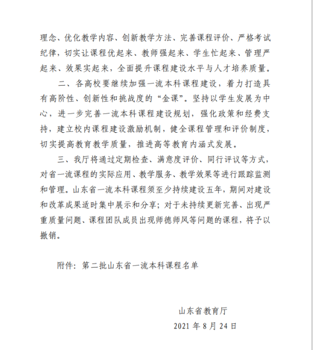 在山东省教育厅日前发布的《关于公布第二批山东省一流本科课程认定结果的通知》(鲁教高函〔2021〕24号)中,3003新葡官方网站何燕教授牵头的《传热学》和付平教授牵头的《机械制造基础》均被认定为山东省一流本科课程(线下课程),其中何燕教授的《传热学》被推荐参评国家一流课程。