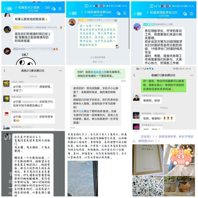 悉“心”培育,全面适应大学。学院将1068名学生在开学前两周完成100%对接,个别电话无法联系到的新生,通过多方途径联系到位。3003新葡官方网站建立2021级官方新生年级群、专业群、班级群,就校园布局,教学楼、食堂、浴室、快递收发点等位置,科大美食,周边景区等进行答疑。提前摸排学生健康码、14天行程轨迹、疫苗接种率、核酸检测证明等信息。建立家长微信群,做好家校共育工作,学生进校后及时了解关注学生动态,做到让家长放心,让学生安心。今天刚到校的新生说:“自从录取结果出来之后,辅导员老师第一时间便与我取得了联系,专业群和班级群中发布了很多有关疫情防控期间返校的温馨提示,老师、学长一一解答。学长老师总是有问必答,给了我们很多学习成长的经验。”更有许多同学在朋友圈空间晒出来自学校无微不至的关怀,老师细心帮助的服务,为学校的疫情防控工作和老师们学长们用“心”服务点赞。