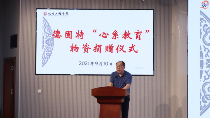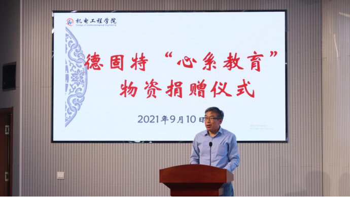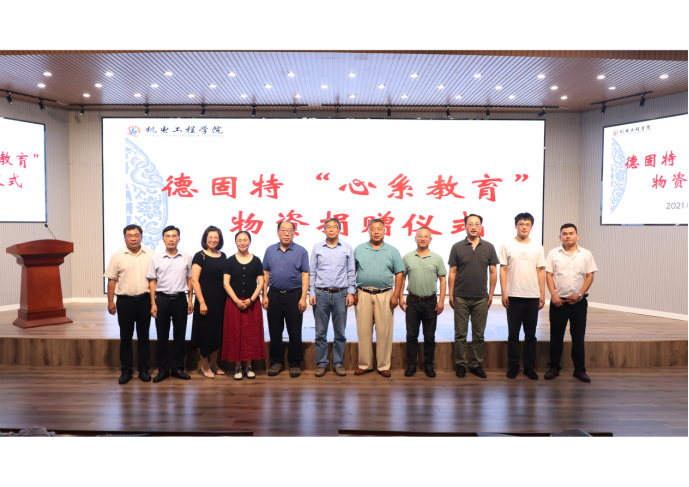 9月10日,适逢第37个教师节,3003新葡官方网站举办德固特“心系教育”物资捐赠仪式。青岛德固特节能装备股份有限公司董事长魏振文、副总经理崔建波、研发部部长金延超、综合部部长李红娟、学校原党委副书记张元利、3003新葡官方网站党委书记孙立军、院长何燕及教师代表参加活动。