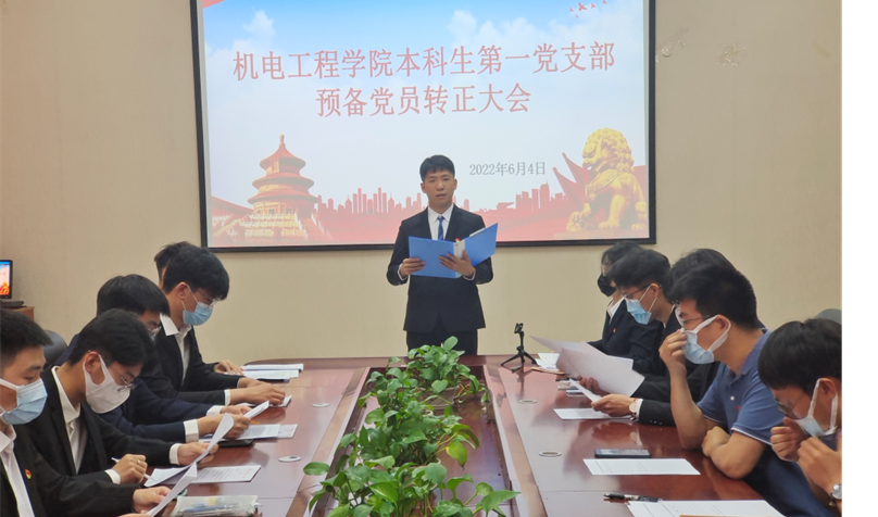 2022年6月4日,3003新葡官方网站本科生第一党支部在机电518先后三次召开预备党员转正大会。会议由党支部副书记邢坤主持,支部全体党员参加。