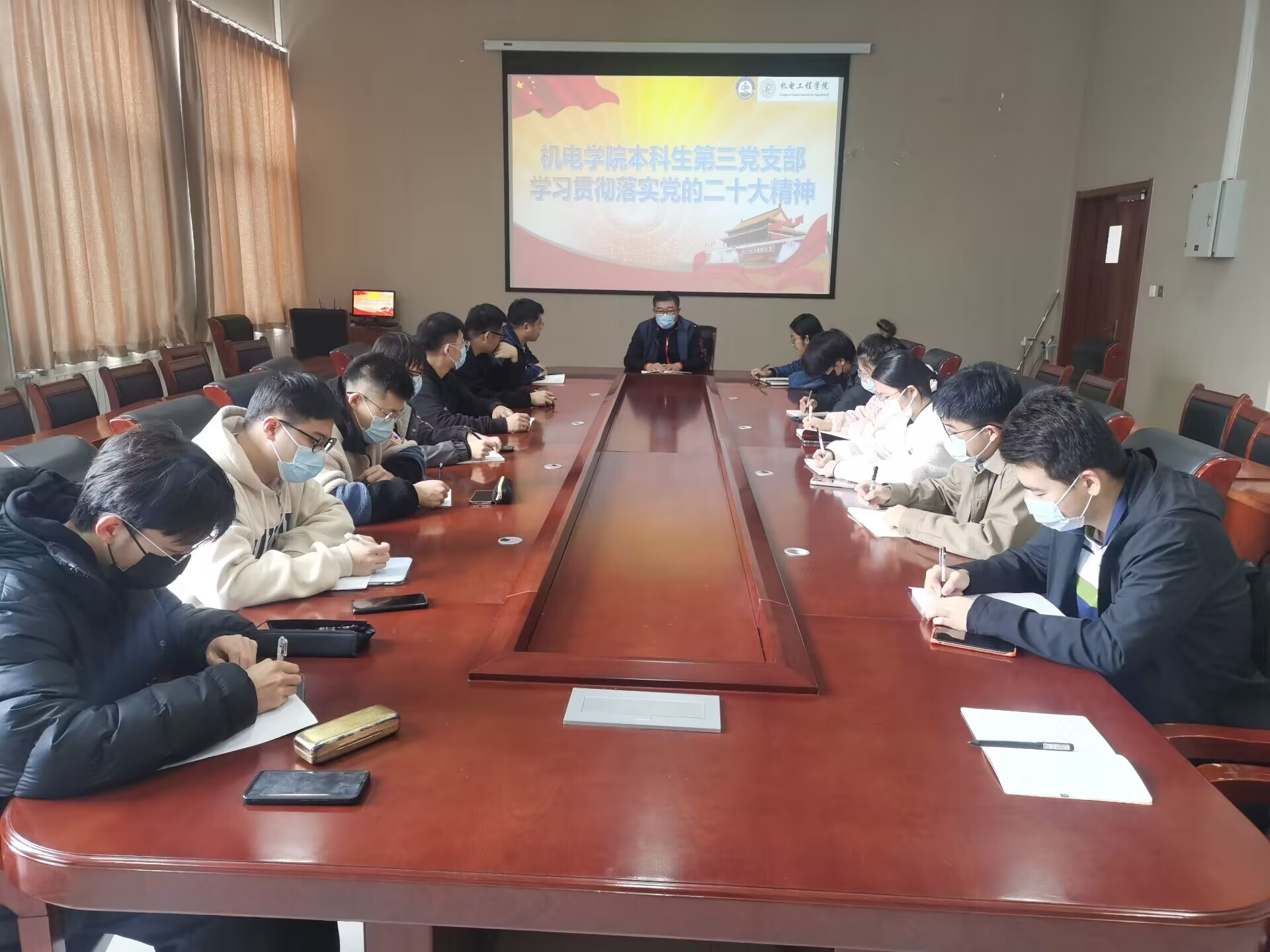 11月23日,3003新葡官方网站本科生第三党支部召开学习贯彻落实党的二十大精神集体学习,会议在3003新葡官方网站518举行。全体党员参加了集中学习,会议由支部书记王作辉主持。