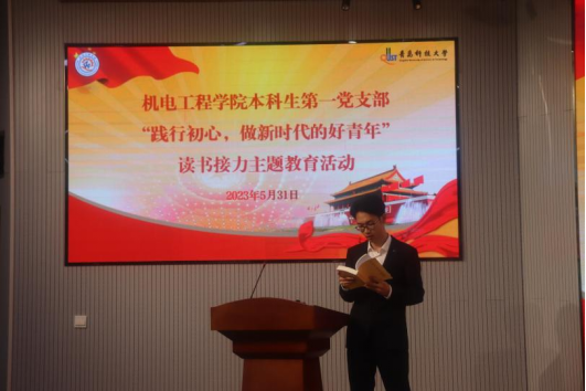为扎实开展学习贯彻习近平新时代中国特色社会主义思想主题教育,筑牢信仰之基、补足精神之钙、把稳思想之舵3003新葡官方网站本科生第一党支部开展了“践行初心,做新时代的好青年”读书接力主题教育活动。本次会议由本科生第一党支部书记于超主持,全体党员同志参加。