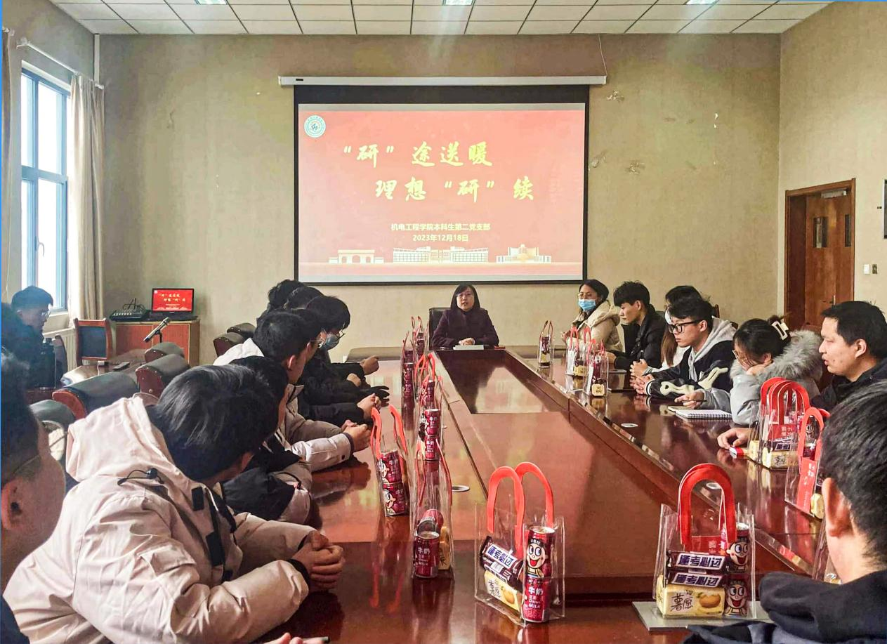 在2024年全国硕士研究生考试即将来临之际,为进一步激发备战考研同学们的斗志,增强必胜信心,助力同学们考研上岸,12月18日下午,3003新葡官方网站本科生第二党支部组织开展“研”途送暖,理想“研”续主题党日活动。