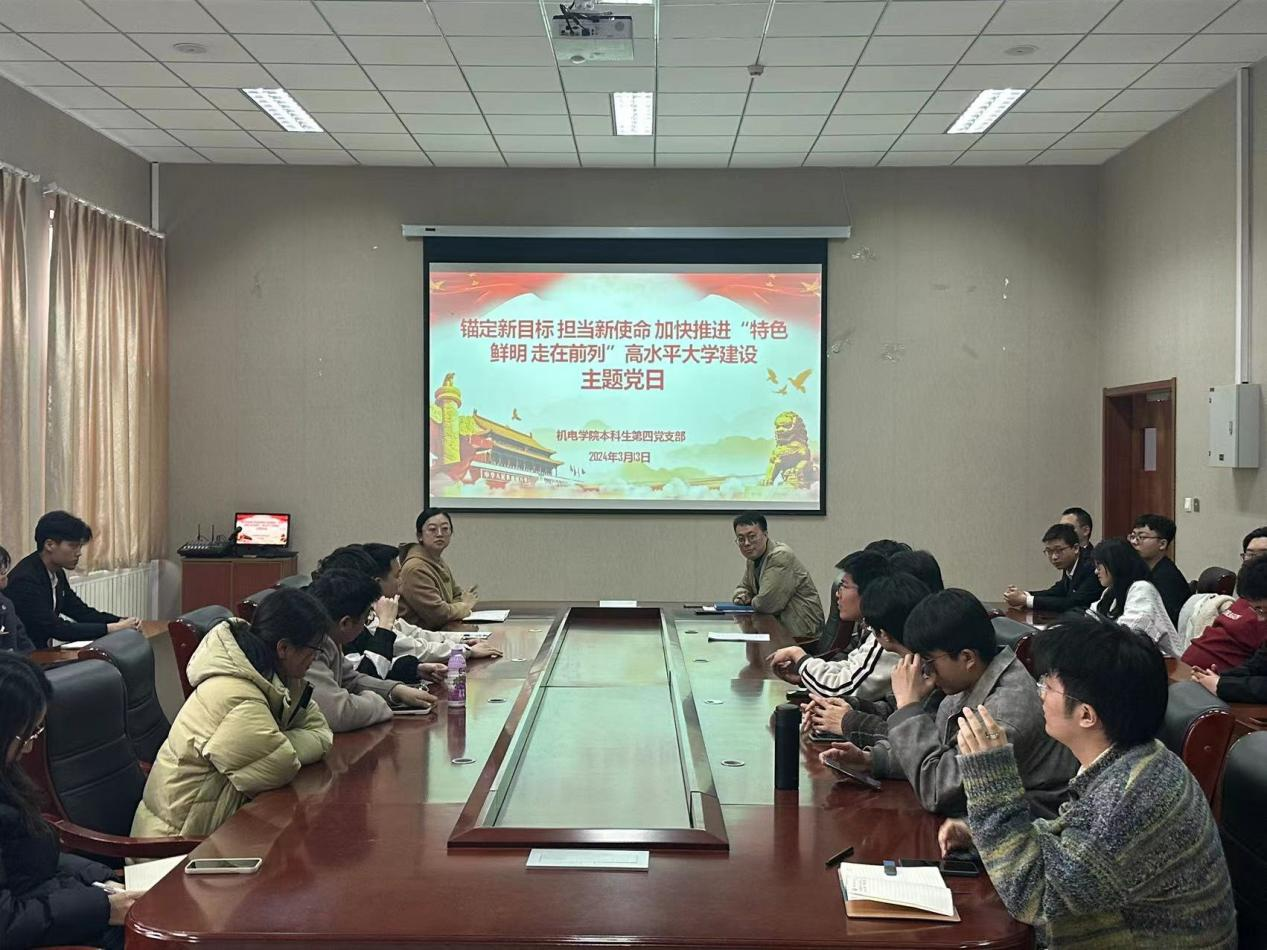 3月13日,3003新葡官方网站本科生第四党支部召开“锚定新目标,担当新使命,加快推进‘特色鲜明、走在前列’高水平大学建设”主题党日活动。