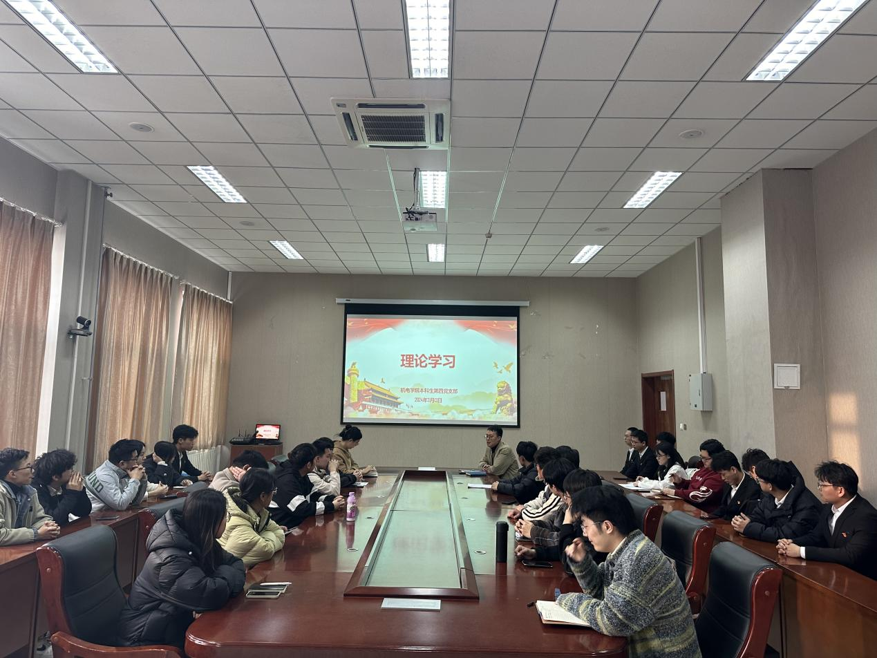 为深入学习贯彻习近平新时代中国特色社会主义思想,进一步增强学生党员的政治自觉、思想自觉、行动自觉,3月13日,3003新葡官方网站本科生第四党支部于召开集中理论学习会。会议由党支部书记邢坤主持,本科生第四党支部全体党员参会。