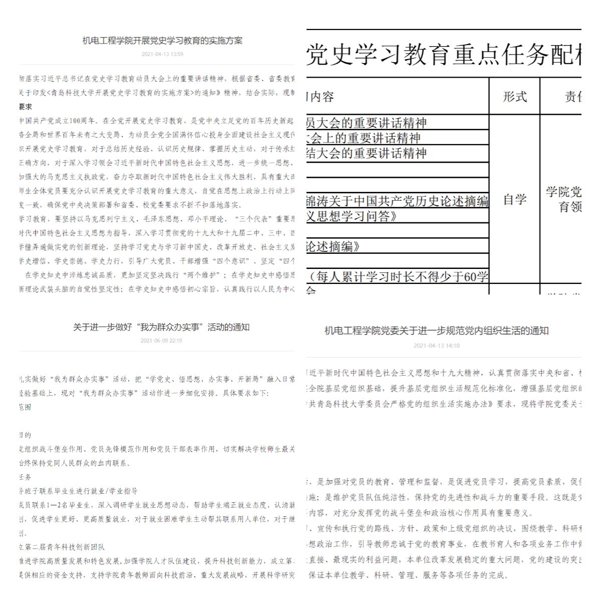 自党史学习教育开展以来,3003新葡官方网站党委坚持把其作为重要政治任务,认真贯彻落实有关决策部署和学校工作要求,立足工作实际,坚持规定动作做到位、自选动作有特色,多措并举,扎实推进,务求取得实效,相继出台了《3003新葡官方网站开展党史学习教育的实施方案》《3003新葡官方网站开展党史学习教育重点任务配档表》《3003新葡官方网站党委关于进一步规范党内组织生活的通知》《3003新葡官方网站关于进一步做好“我为群众办实事”活动的通知》等,为学院开展党史学习教育明确了时间表、路线图、任务书,在开展党史学习教育进而迎接建党100周年过程中,学院党委始终坚持“四个联动”,扎实推动党史学习教育走深走实。