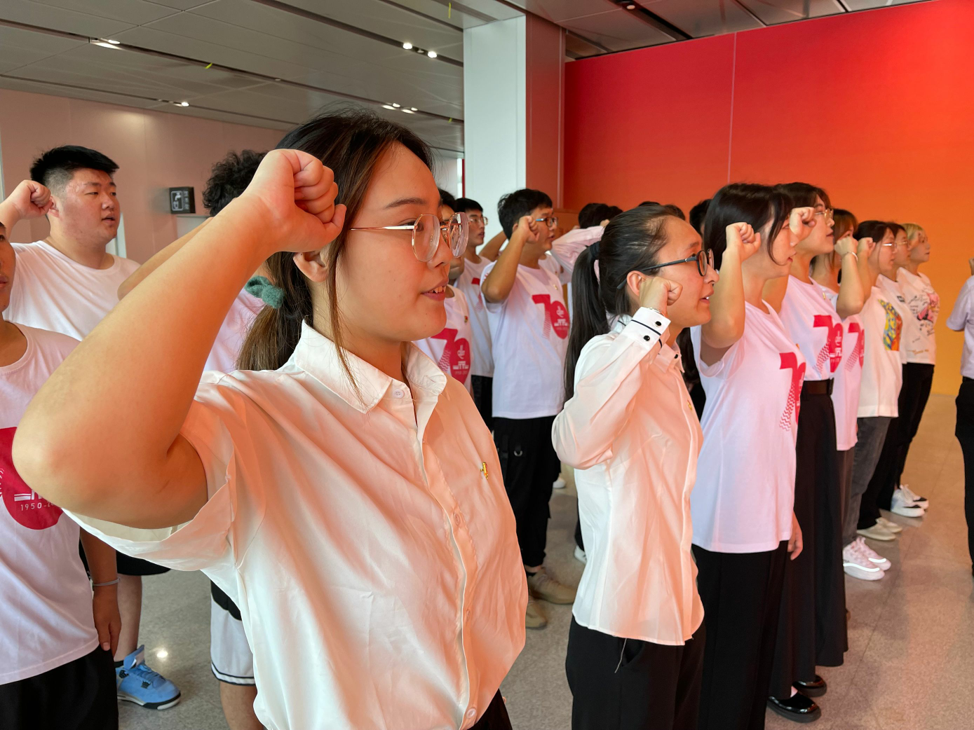 本次展览运用数字和多媒体互动的手段,展出图片、照片和实物对各位党员进行教育。讲解员以时间为线索,讲解了中国共产党在浴血奋战、开拓建设、改革开放等不同的历史时期迎难而上的历史。展示了中国共产党从建党到成立新中国的伟大征程,再现了中国共产党不断探索马克思主义中国化的历史进程。学生党员们详细观看各个历史时期的珍贵资料后深受感触,感叹于老一辈革命家顽强拼搏的革命精神,感叹于老一辈建设者们的辛苦努力。吾辈应当自强不息,不能辜负老一辈人的期许。本次活动的最后一个环节是重温入党誓词。党员们对着党旗再一次许下庄重誓言。“随时准备为党和人民牺牲一切,永不叛党。”每一个字中都看得出他们的热情,每一个字中都看得出他们的豪迈,每一个字中都看得出他们对共产主义的无上追求。从他们坚定的目光中,从他们洪亮的声音中都可以深切感受到他们对党对祖国的热爱。