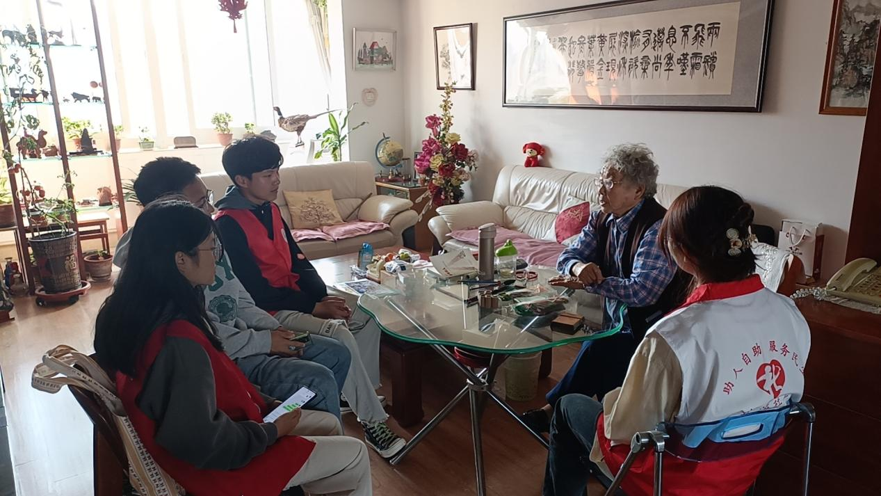 在这个特殊的节日里,3003新葡官方网站微尘志愿者协会成员同社工站工作人员为营造养老、孝老、敬老的社会环境而努力,切实增强了老年人的获得感、幸福感、安全感。活动中,3003新葡官方网站微尘志愿者协会会员与社工站工作人员分组入户,走访了以范玉芬老人为代表的病症患者和以郑文彪老先生为代表的退休老人,了解了他们的身体状况和生活情况并倾听了他们的诉求。大学生志愿者通过采访的形式与老人进行互动,提升老人的自我价值感。