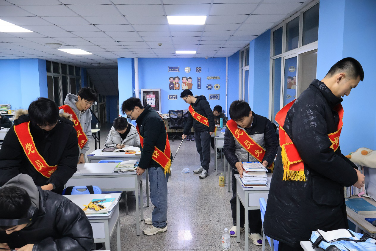 活动伊始,在党建活动室内召开支部会议,围绕“党员-入党积极分子-宿舍”三级网格管理体系,对第一党支部所有学生党员提出要求,号召全体党员发挥先锋模范作用,积极参与宿舍卫生整治,为打造文明、整洁的宿舍环境贡献力量。学生党员代表赵梓清强调,党员应当率先垂范,带动身边同学共同参与,形成良好的宿舍文化氛围,推动宿舍环境持续优化。
