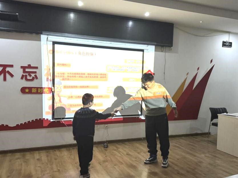 课程中,通过视频配音和互动环节,义教志愿者刘佳琪等人鼓励小朋友们思考如何在日常生活中培养勇气和担当精神。小朋友们积极参与互动,纷纷表达自己对哪吒的喜爱,表示自己对本次课程印象深刻。