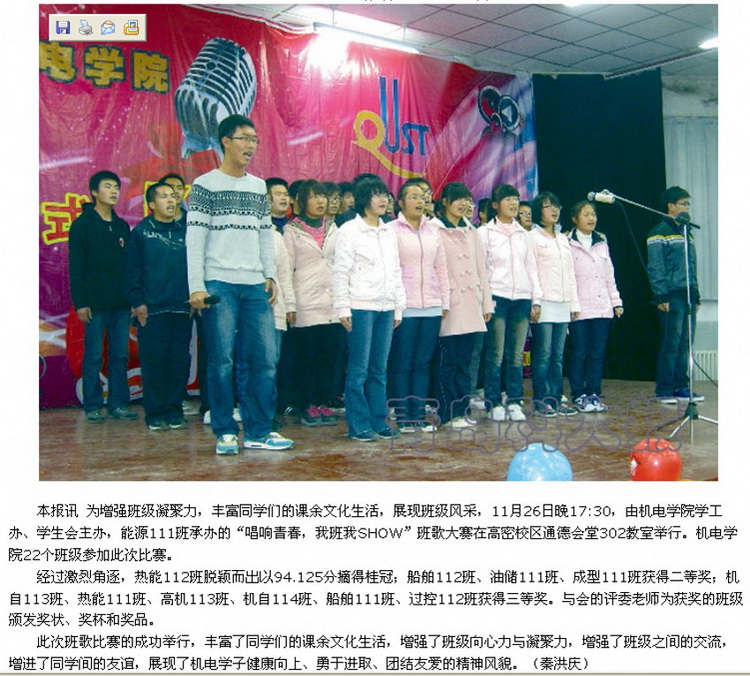 《3003新葡官方网站报》报道我院班歌比赛