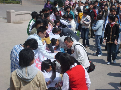 4月9日中午,3003新葡官方网站在东部校区餐厅东门举行了大型横幅签名活动。这次活动旨在号召科大师生以饱满的热情积极配合学校做好评估工作,自觉参与评估有关的各项活动。