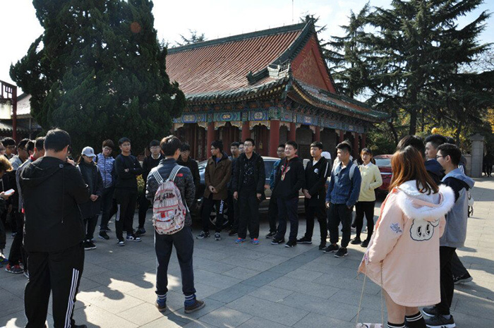 随后青尘义工队组织志愿者们参观了湛山寺的大雄宝殿、天王殿、三圣殿、藏经阁以及药师塔等地,参观过程中志愿者们感受到前来上香的信客的虔诚,并通过路边的竖碑上学到了关于本土的佛教文化知识。活动结束时,青尘队员一起去湛山寺外去迎接一位为公益事业奉献多年水滴义工的高位截瘫老队员。老人向队员们传授义工心得,希望同学们能将“奉献、友爱、互助”的志愿精神传承下去。最后,青尘队员们与老人轮流握手告别。此次活动到此圆满结束。