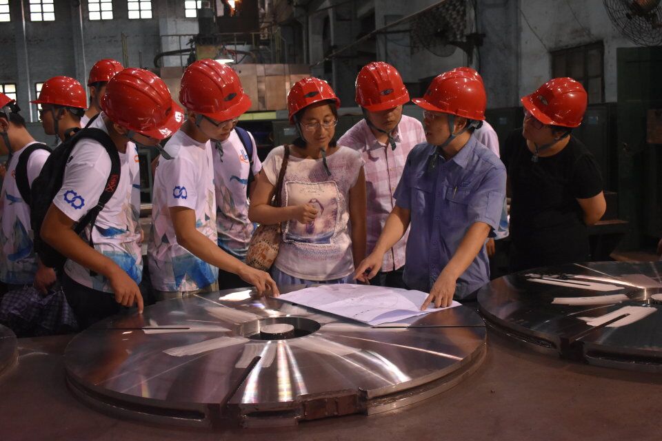会议结束后,实践团成员在徐开来经理的带领下参观了桂林橡胶机械有限公司的工厂车间,包括焊机和铆接车间、机加工车间、装配等车间,徐经理根据产品实物向实践团成员进行了详细讲解,实践团成员在了解了相应知识的基础下,根据观察学习车间里的产品实物之后,对桂林橡胶机械有限公司的硫化机产品有了更深的认识和了解。