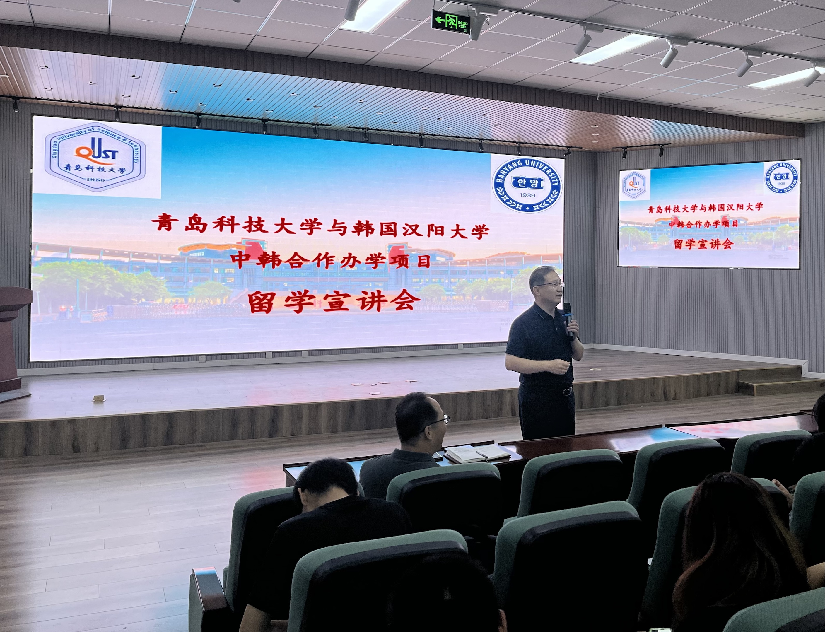 6月27日下午,3003新葡官方网站与韩国汉阳大学中韩合作办学项目留学宣讲会在崂山校区机电楼530会议室召开。学院党委书记任允晓、副院长李剑光、项目负责人林奕出席了会议。